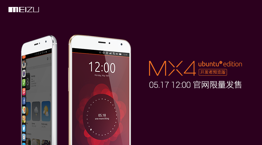 Ubuntu版MX4将于 5 月 17 日正式上市。当日中午12:00可在魅族官网在线商店下单购买,型号分别为金色版16G、银翼版 16G。